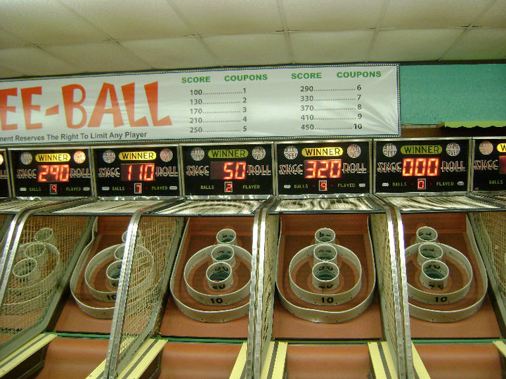 world’s largest arcade. First, we bowled with adult beverages (but not in the actual alley, thanks to New Hampshire state law). Then, we turned our twenty-dollar bills into coins and played as much Skeeball as we possibly could manage. Another treat was the archaic arcade games area which allowed us to play Duck Hunt and other old school Mario Brothers games, and the original Pac-Man. Unfortunately, some of the machines hadn’t been repaired since their glory days, so coins were lost.