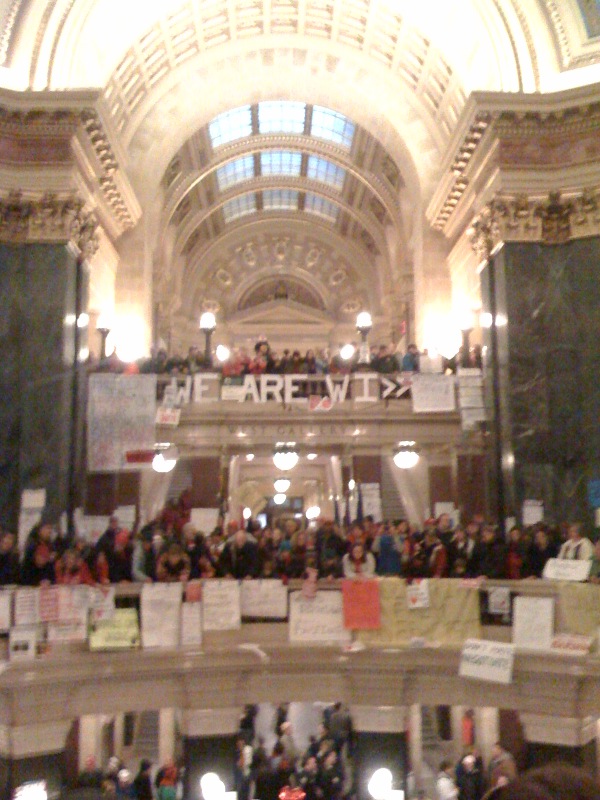 When I arrived in Madison on Day 5 of the protests, the first thing that struck me was that life on the east side of the city (which is how you enter Madison when you drive from Milwaukee) was that people were going about their daily lives completely unscathed by the events at the Capitol. Some frenzy!