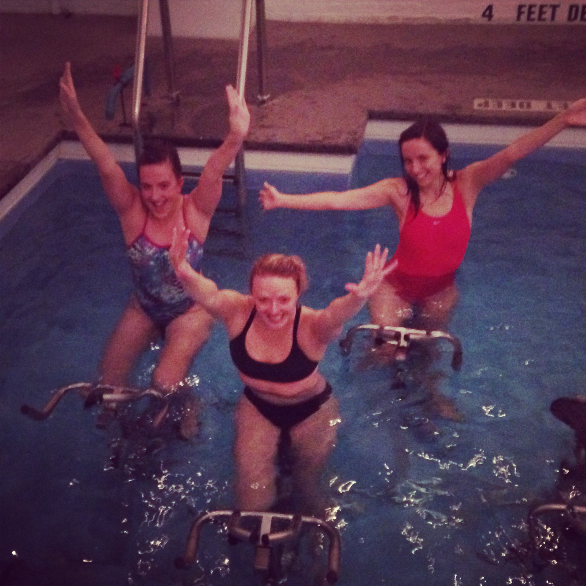 Another one of my favorite aspects of the class was the ability to get a great arm workout while also focusing on legs. Because the water can hold your body weight, we were able to do some cool moves where we leaned off the back of the bike and treaded water while cycling with our feet. I’ve definitely felt that sort of resistance in an arms workout since my swimming days!